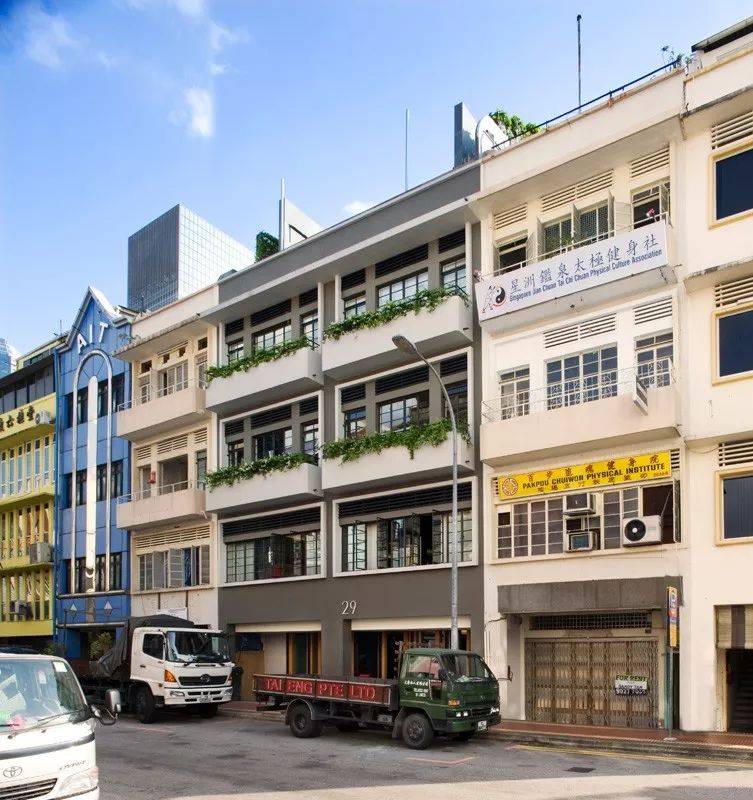 WOHA工作室建在新加坡的市中心,由两间相邻的传统建筑改造而成。工作室分成办公室、展厅和露台三个部分,除了工作区域外,大部分空间用来展示模型及工作室作品,露台可以俯瞰新加坡的城市风光。
