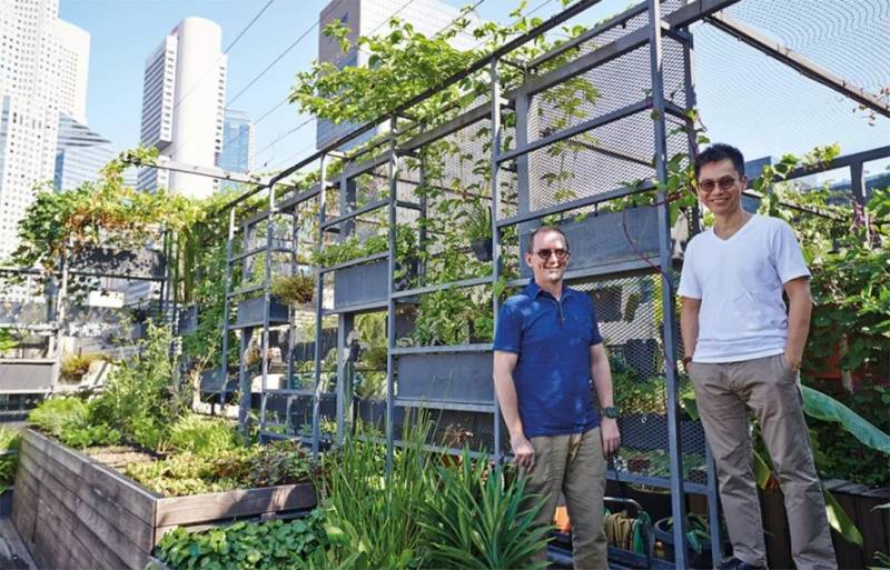 顶楼的小农场为整个公司提供蔬菜供给,未来WOHA将把太阳能板放在楼顶,为办公室节约能源开支。