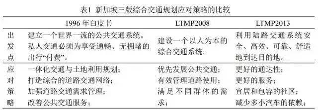 新加坡多年来的规划都坚持“以人为本”的理念,从1996年交通白皮书,到LTMP2008和LTMP2013,逐步从基础设施建设转向运营优化、服务提升,并提出建设宜居社区;从功能方面来考虑,城市交通系统从最初的交通功能逐步扩展到服务功能,并在LTMP2013中考虑了交通系统更加广泛的整合社会的功能。