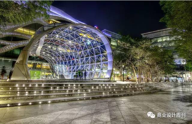 该商场还设置了一个空中花园,能够从上往下俯瞰整个街区,视野极佳。不仅大大节约了地面空间,而且创造了一个社区交流活动场所,拉近了人与人之间的距离,强化了购物中心的社交属性。
