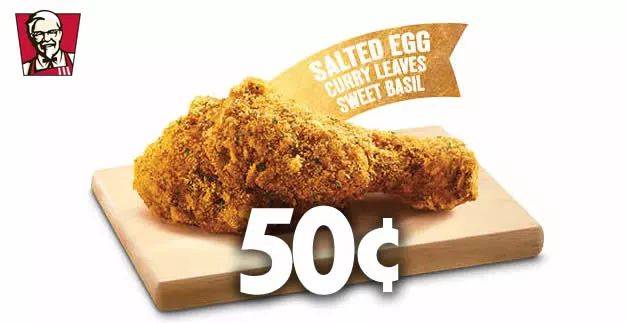使用DBS/POSB卡支付,购买任何套餐,即可以$0.50享有肯德基最新推出的咸蛋咖喱炸鸡腿!