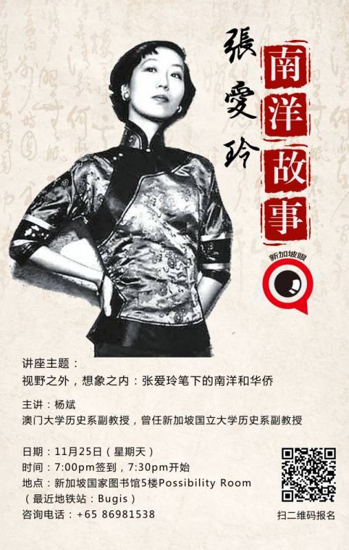 讲座:视野之外,想像之内:张爱玲笔下的南洋和华侨