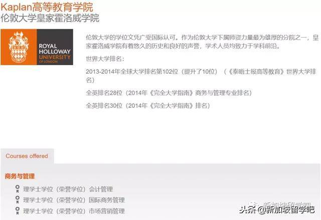 中华人民共和国教育部留学服务中心认可澳大利亚莫多克大学,伦敦大学皇家霍洛威学院,国立爱尔兰大学都柏林学院在新加坡Kaplan提供的高质量课程。