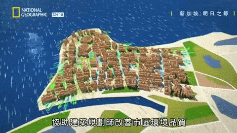 举个栗子,新加坡位于热带,为保障市区的风可以流动,建屋发展局就把街区、组屋、公共空间、公园等放到电脑模型里,来完成较为合理的建设规划。