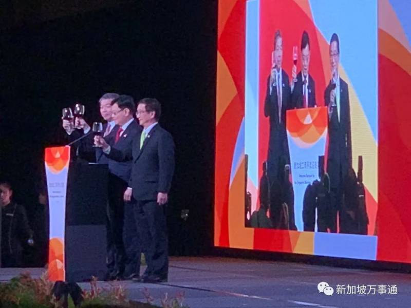 宴会一开始,新加坡中华总商会黄山忠会长致欢迎辞,黄会长说,“今年是中新建交28年,是中国改革开放40年,也是总商会成立112年,我们站在在这个重要的节点,要把握前进的方向。新加坡作为今年的东盟轮值主席国,积极推动自由贸易,把握各个国家尤其是中国提供的商机……”