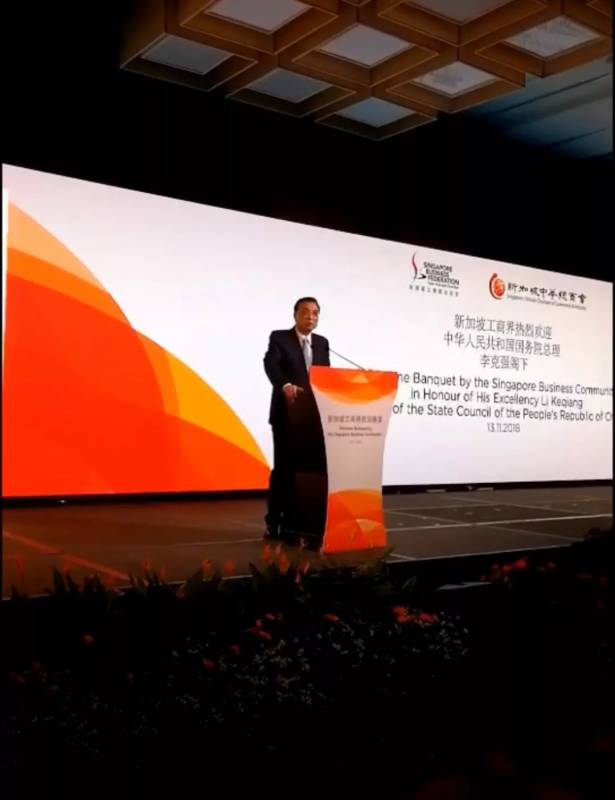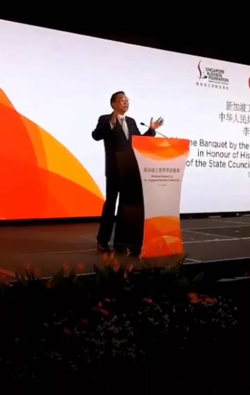 接着,李总理发表主旨演讲,李总理一上台就表现出了非凡的演讲口才,引来掌声阵阵,“我很高兴应邀参加中华工商总会和新加坡工商联合总会共同举办的新加坡工商界联合晚宴,跟大家见面感到非常亲切……