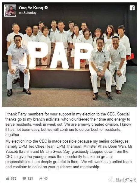 有意思的是,中委选举过后,“双王一陈”中,只有王乙康在面簿上发表感言,其他两位都静悄悄的。王乙康除了感谢党员和所管辖选区的基层外,也感谢五位前辈让贤,让他得以有机会当选中委,并表示“我们的团队会团结一致,继续受惠于你们的指引和教导”。
