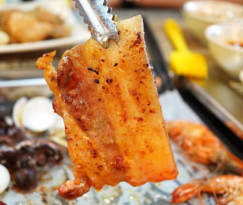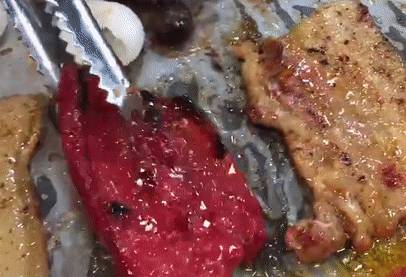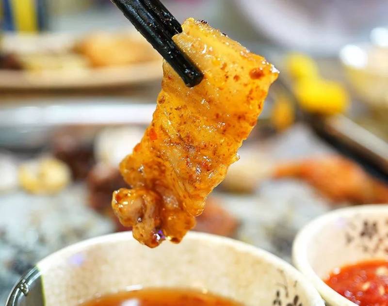 肉片在铁板上“滋啦滋啦”作响,渐渐从生至熟,