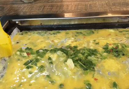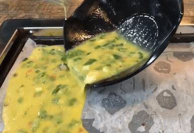第步:蛋液凝固之后轻轻夹起烤盘上的纸,