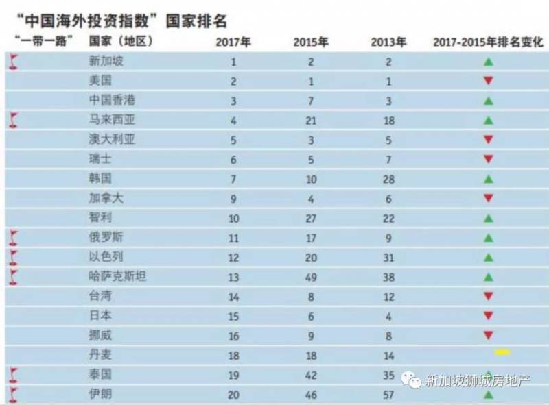 智库数据- 新加坡在2017年超越美国,成为中国海外投资指数第一名