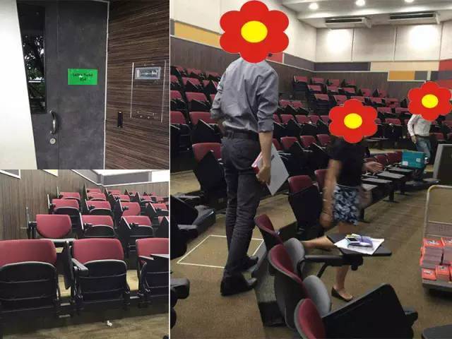 我们是先从学校的报告厅开,学校报告厅需要老师刷卡进入,如果是在上课期间,旁边的“Lesson in Progress”指示灯就会亮。老师在带我们参观的时候,提醒我们注意报告厅椅子暗含的建筑设计玄机:这张摆放方式和布局可以让全场的人都能以一个较好的角度看到讲台,同时桌椅后背弯曲角度也符合人体工程学,更加舒适。