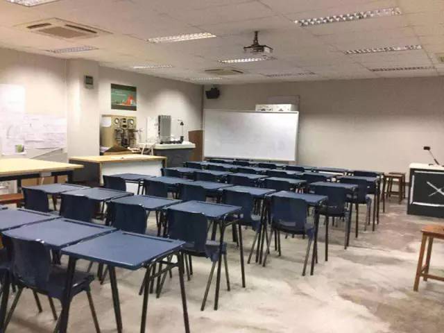 教室整洁,教学设施也全是现代化的一流设备。然后细心的同学可能已经发现了天花板的玄机。