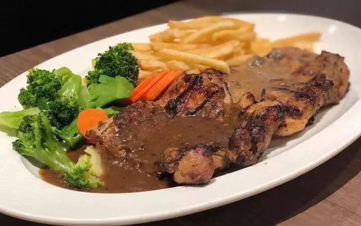 这里有各种牛排、鸡排、海鲜等