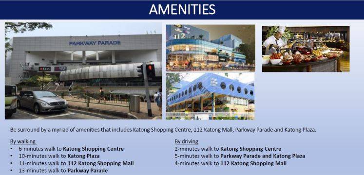 东海岸是新加坡美食天堂,可以享受出名的路边小吃或传统美食如东南亚特色娘惹菜,或者您有时候想小资一下区现代风格潮人咖啡馆打发下午时光,住户可以到马林百列市镇中心去,商场有大型的百汇广场Parkway Parade、112加东、加东村Katong village、加东商场Katong Plaza,Kinex等等。
