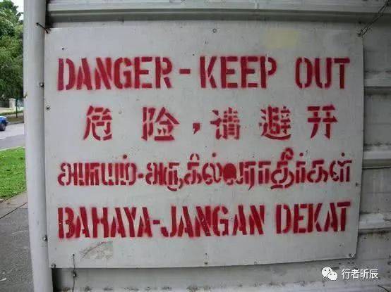 在新加坡这个多元文化和崇尚双语教育的社会,语言也非常方便,普通话广东话福建话英文你总会一种吧。新加坡本地人都会至少2-3种语言,无论你来自哪里,大家都可以沟通。比如上图的警告牌,就是用4种语言写的,这在新加坡是非常常见滴!