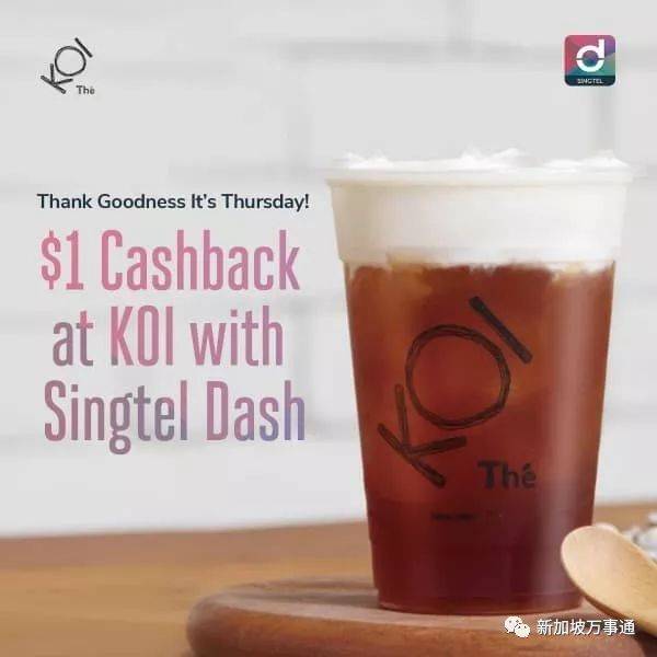 坡岛奶茶店千千万,喝来喝去还是KOI最得我心,最近KOI的折扣不要错过,每周四通过Singtel Dash购买KOI现煮茶可获得1新元现金返还。