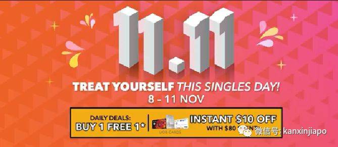 个人护理产品7折,使用UOB卡消费$80可减$10。双11当天部分产品买1送1。