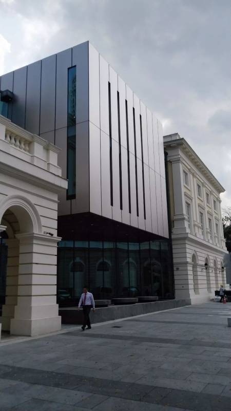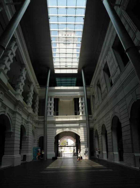 作为一个国家博物馆,新加坡国家博物馆果然好小。毕竟一座城市的历史文物不会有太多,不过新加坡国家博物馆在布展上确实展示出较高的水平。在建筑上,主要是基于原有建筑并向后扩建。利用玻璃房子来将新旧的建筑空间拼合在一起。主要的封闭展示空间至于下部,使得公共空间的部分显得更加开放明媚。同时哑光铝合金,玻璃以及黑色人造石材的简洁与原有建筑装饰化的门头窗框实现了极佳的对比效果。