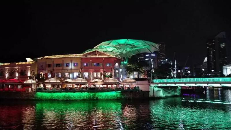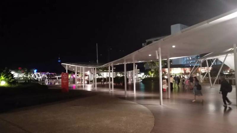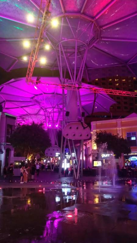 克拉码头的老建筑很著名,同时运用几个很科幻的巨大遮阳伞,给公共空间提供了遮蔽,夜晚的灯光比较放飞自我。同时这里也是重要的酒吧餐饮一条街。