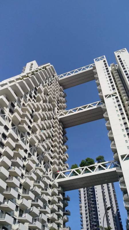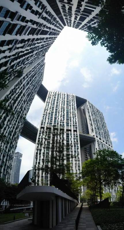 新加坡真是建筑大师的实验田,尤其是在住宅项目项目上,能够高品质的呈现这么多大师的作品,实属难得。里伯斯金在这个住宅群中依然延续着极强的个人风格,如同刀锋般的塔楼形态,很有标志性。同时在屋顶和连桥上也入乡随俗的布置了大量树木绿化,上面的框架使得屋顶在满足绿化功能与使用的同时,也保持着建筑的形态的视觉冲击力。