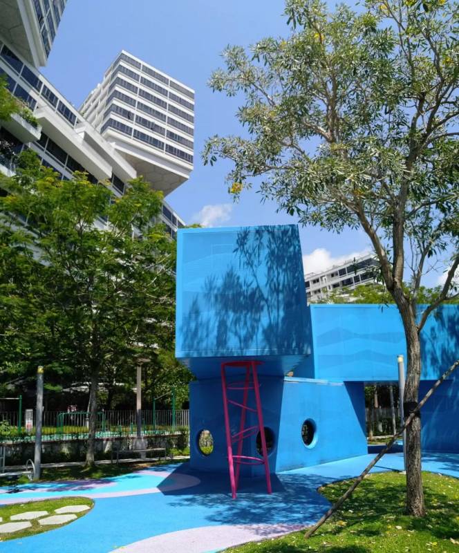 前夫哥的住宅力作,看似简单的体块搭接,但却获得了非常强的视觉冲击力(同时结构成本应该相当高)。不知为何,总觉得有那种共产主义理想社区,或者是学生时代课程设计的感觉。庭院中的公共活动设施也非常齐全,泳池,活动室,烧烤区,商店等等。另外很好玩的是儿童游乐设施也运用到了主体建筑的构成模式,蛮有意思。