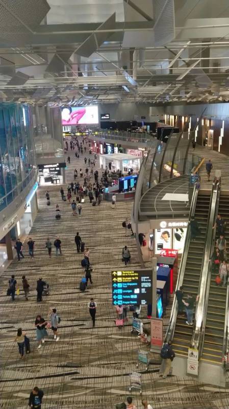 由于航班班次的原因我主要参观了T1与T3航站楼。樟宜机场常年拥有极高的口碑,在我的直观感受来看,主要有着两个方面,一个是飞行流程的便利性,一个是候机环境。从便利性上将,樟宜机场的T1、T2、T3号航站楼连接为了一个整体,中间利用小型轻轨设施与地下通道串联,乘客从进入机场到航站楼的设施被控制在较短的距离内。而环境上,T3航站楼采用了可调节的自然采光屋顶,同时在室内运用大面积的绿植墙面与瀑布设施来达到较好的环境效果。