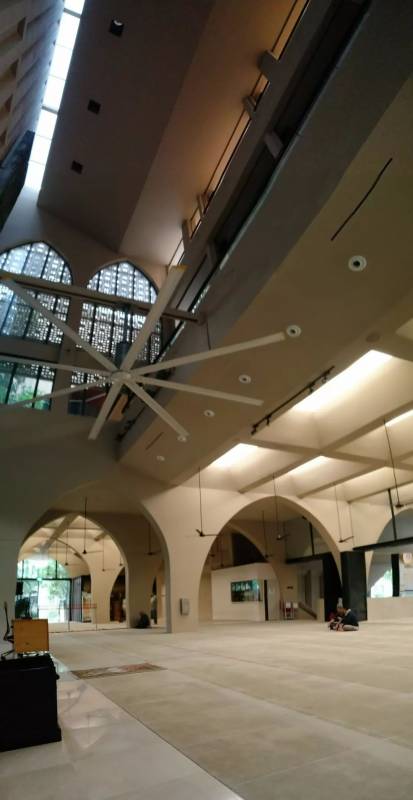 一座开放且现代的清真寺,对于清真寺传统的建筑空间已经装饰模式进行了多个层次的解构。将传统清真寺的穹顶改为了屋顶花园的景观凉亭,室内则用挑高空间的带状天光来营造神圣感。几个层次的屋顶花园以及下沉空间里绿植的设计确实让建筑的形象更加温和。