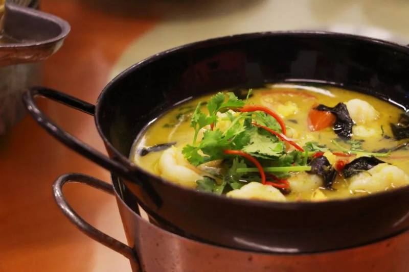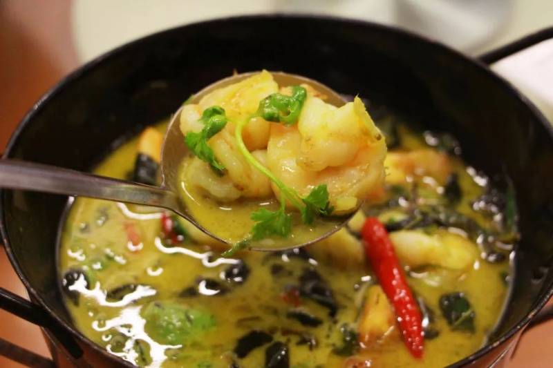 饱满的虾肉与甜香味的绿咖喱完美交融。