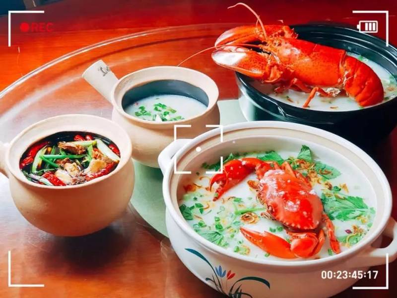 让龙虾和螃蟹的鲜味充分滋润粥里。