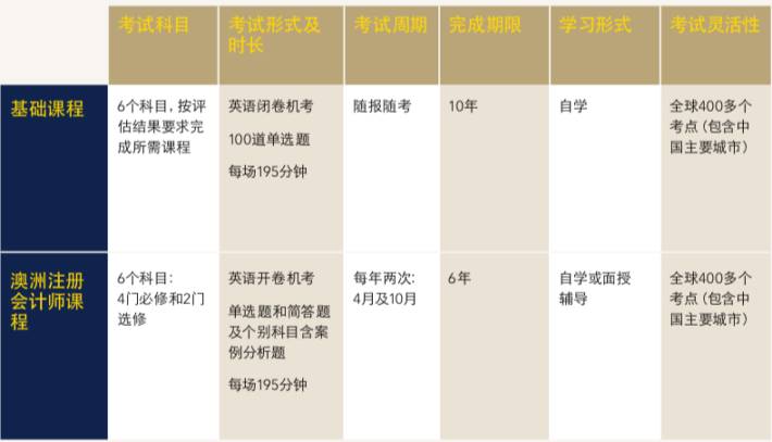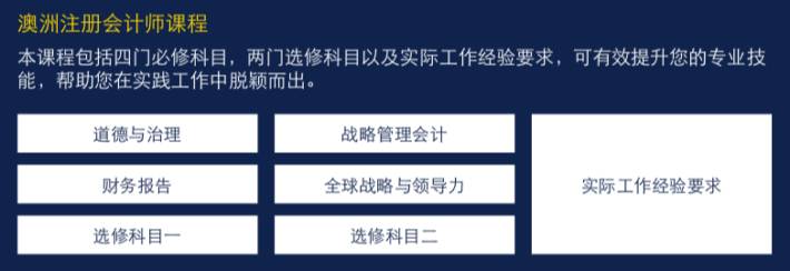 如果申请人已经完成税务和审计科目的学习,可以任意选择两门选修科目。如果申请人尚未完成税务和/或审计科目的学习,则必须选择高级税法和/或高级审计与鉴证作为选修科目。