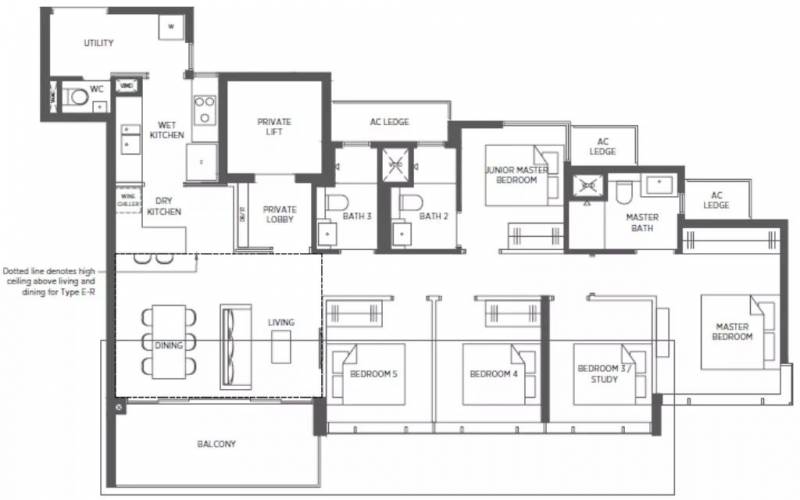 . 五卧室单位,套内面积130平方米(1399平方尺)起,售价$221.8万起。