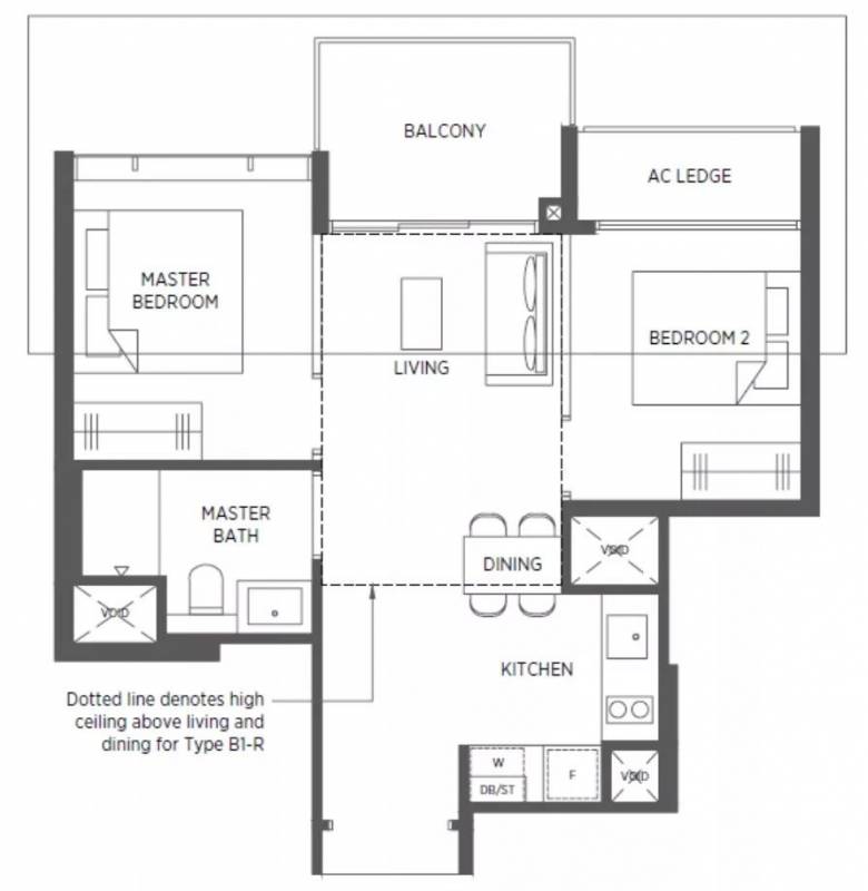 2. 两卧室单位,套内面积54平方米(581平方尺)起,售价$98.8万起