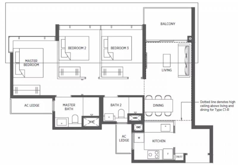 3. 三卧室单位,套内面积84平方米(904平方尺)起,售价$137.8万起。