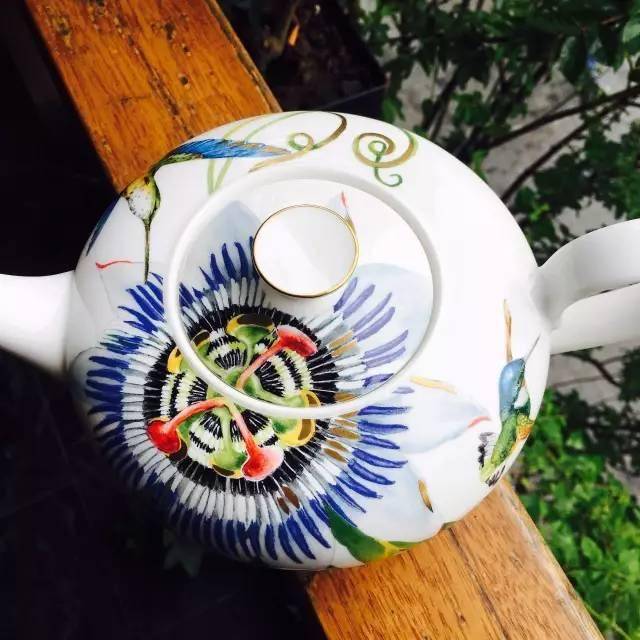 这颜色,这花纹,跟窗口的花花草草太搭调啦。我小心翼翼地拿着茶杯,茶壶,以花草为背景拍了几张。