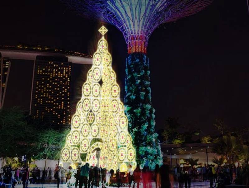 Supertree也会伴随着好听的圣诞歌曲上演精彩的灯光秀,让你沉浸在嗨爆的节日氛围中。