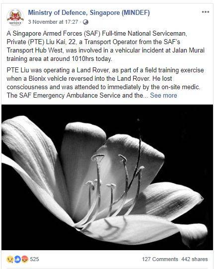 11月,中国PR国民服役军人在军训区所驾驶的一辆路虎车,被倒退的Bionix步兵战车撞上,他意外身亡。