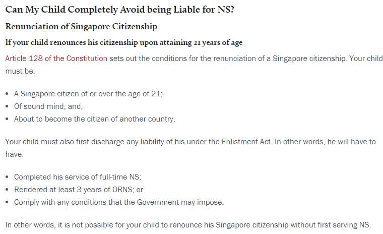 换句话说,如果没有先服役,就不能放弃新加坡公民身份。