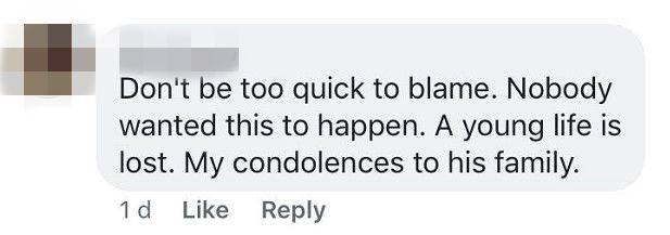 “不要过早的指责,没人希望发生这样的事情,年轻的生命逝去了,请家人节哀。”