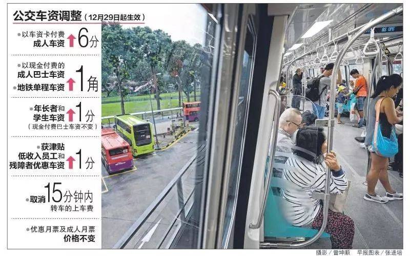 地铁和公共巴士车资今年12月29日起上调,以车资卡付费的成人车资每趟车程将调高6分,以现金付费的成人巴士车资及地铁单程车资则上调1角。