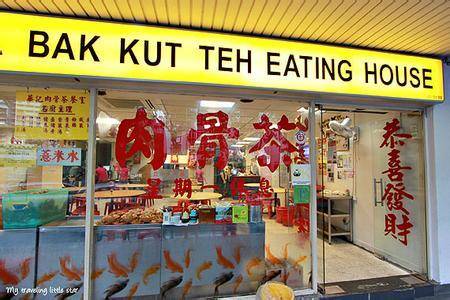 著名的肉骨茶店有发起人肉骨茶餐馆 (347 Balestier Road), 黄亚细肉骨茶餐室(8 Rangoon Road) ,以及新兴瓦煲肉骨茶(439 Joo Chiat Road),全天供应肉骨茶。肉骨茶可与米饭或是面条搭配享用,食客也常常加入油条搭配。