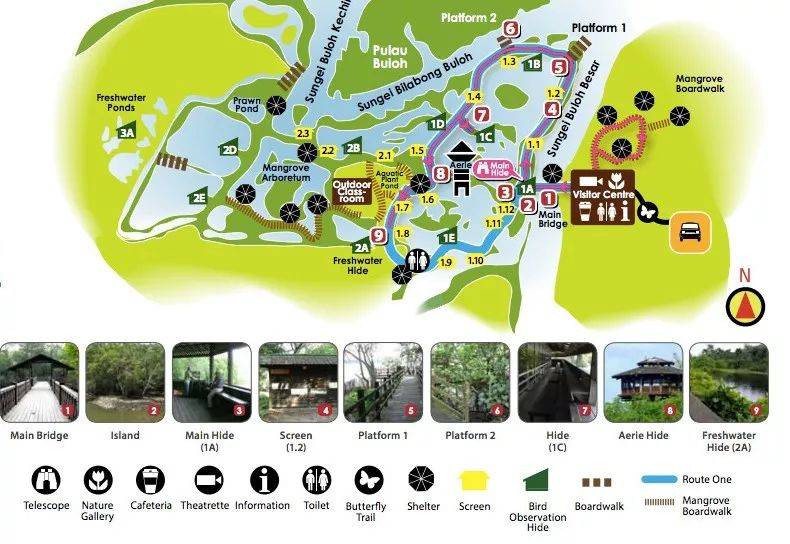 这条路线位于新加坡北部,是新加坡最早的湿地公园。在这里,你不但可以欣赏到茂密的红树林,还可以看到各种野生动物。从 11 月到第二年 3 月鸟类迁徙的季节,还有大量水鸟来此繁衍。