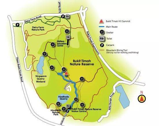这一处游览路线也是Bukit Timah Hill,即新加坡最高山的所在地。山高 163 米,山路比较陡峭,攀登时要格外小心。著名的武吉知马火车站旧址The Rail Corridor就位于整个园区的西南部。