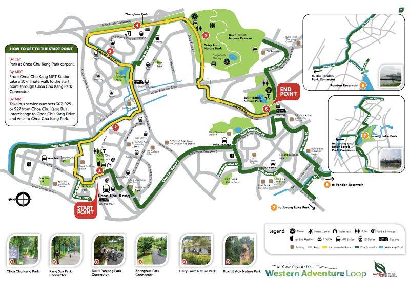 总长约 12 km的游览路线可以带你途经四个公园:Bukit Batok Nature Park、Jurong Lake Park、Dairy Farm Nature Park、Choa Chu Kang Park。沿途你可以欣赏到河流、水塘和峭壁的风光。