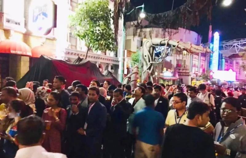 团员们了解会场环境,档案测试,一切顺利,再回到饭店稍休息后,参加2018ICQCC欢迎酒会。不若以往,欢迎酒会通常有主办单位的欢迎致词、当地的文化表演等环节,此番在环球影城内举办,这些前缀的仪式都省了。在纽约街、芝麻街的街道上,每隔一小段路,摆设自助餐点及饮料,走到哪儿都可随意享用;影城内并开放了几处场馆,有入场玩3D变形金刚战斗的团员,应该都透过尖叫声好好解放了发表前的压力。
