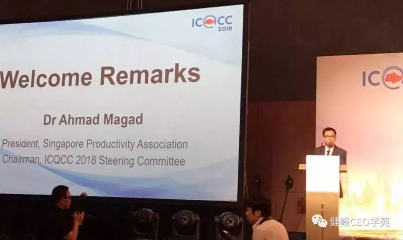 由新加坡生产力协会董事长暨生产力中心董事会主席的Dr. Ahmad Magad简单致欢迎词之后,新加坡工业贸易和工业部秘书处的Dr. Tan Wu Meng先简单介绍了ICQCC的起源,并提及新加坡的进步,是推崇日本QC管理的结果,尤其是导入QCC活动,其对每一阶层的员工成长具有莫大的帮助。Dr. Tan说明QCC活动不只是评价技术的改善程度,还包括了创意,QCC活动激发了人的创意的天性;ICQCC提供了一个交流的平台,大家互相分享这些创意,观摩交流并学习成长。