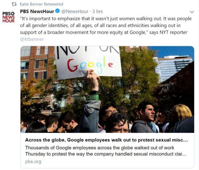 谷歌员工说,时间到了,随即他们走上了大街,而Twitter上也“炸”了。