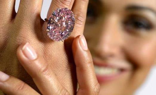 目前拍卖界卖出的最贵钻石是 Pink Star(下图),由纽约的钻石切割商 Isaac Wolf 在 2013年苏富比日内瓦拍卖会上以 8300万美元拍得,这款椭圆形粉钻重达 59.60克拉。