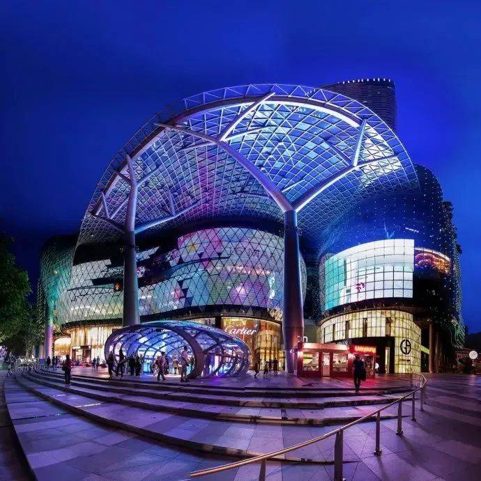该购物中心是一个涵盖零售、生活、娱乐为一体的顶级购物中心,其建筑设计堪比我国的K11系列,是一个非常艺术化的购物中心。外立面运用了三维悬臂式玻璃及金属外壳,并全部安装LED照明设施,其中一个大型的种子结构幕墙,为品牌提供展示空间。