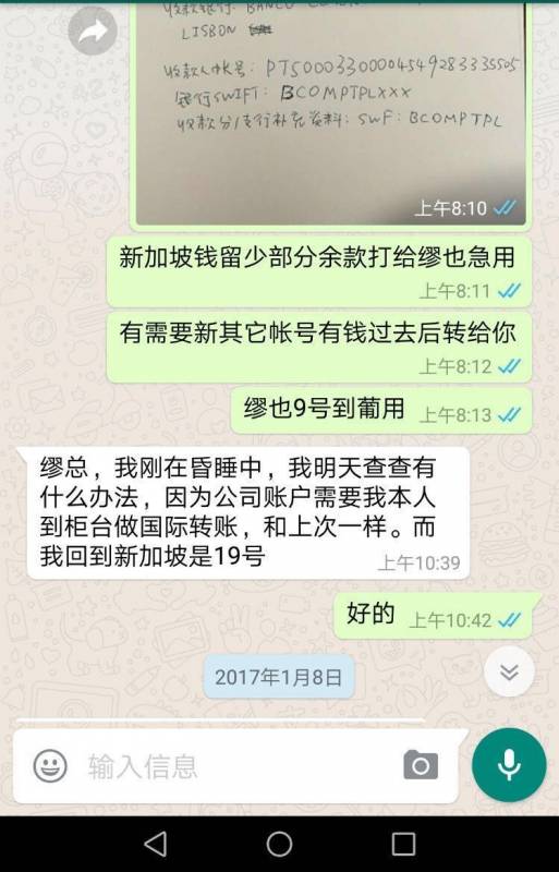 钱某昇确认收到此款(有银行汇款流水和简讯截屏为证),并称会把这个钱汇到他在新加坡虹桥的公司账户,孙女士到新加坡就退还给她。