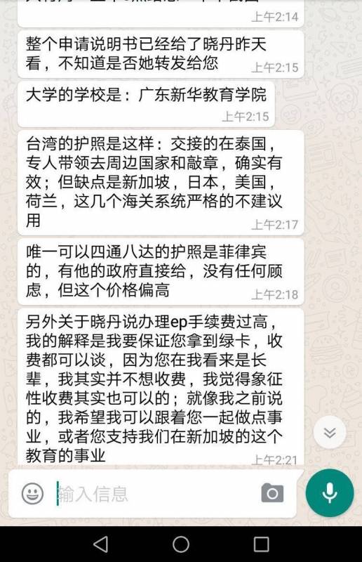 考虑孩子才六岁,一个人在国外不放心,钱某昇又推荐了孙女士去陪读,先办理工作签证,二年之后孙女士还能申请永久居民PR,这样一家就可以在新加坡陪伴女儿了,收费很低只要五万八千元新币的手续费用,申请下来才支付手续费用。